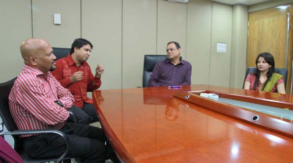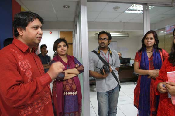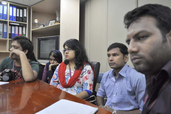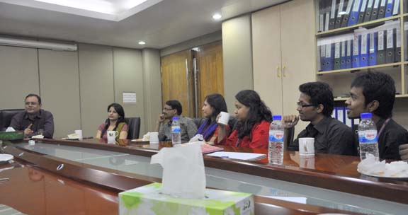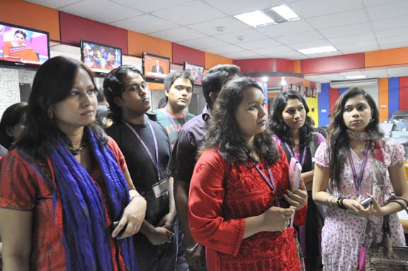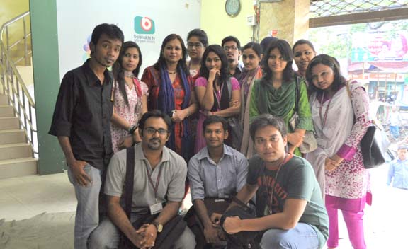Manjurul Ahsan Bulbul, the Chief Executive Officer (CEO) and the Editor in Chief of Boishakhi TV, conveyed a speech on editorial policy, various programs and news that highlight the history, culture and ongoing development of Bangladesh. Moreover he added that the nature of journalism on television of this country is being shaped through the interactions between the ruling politicians and the owners of the television channels. The CEO came upon a few questions from the students after his speech. The session was very informative and interactive as well. Then the Chief News Editor, Mr Rahul Raha showed the students the news room, the department of production, the department of program and specifically demonstrated that how every part contributes and works together to run the whole news.