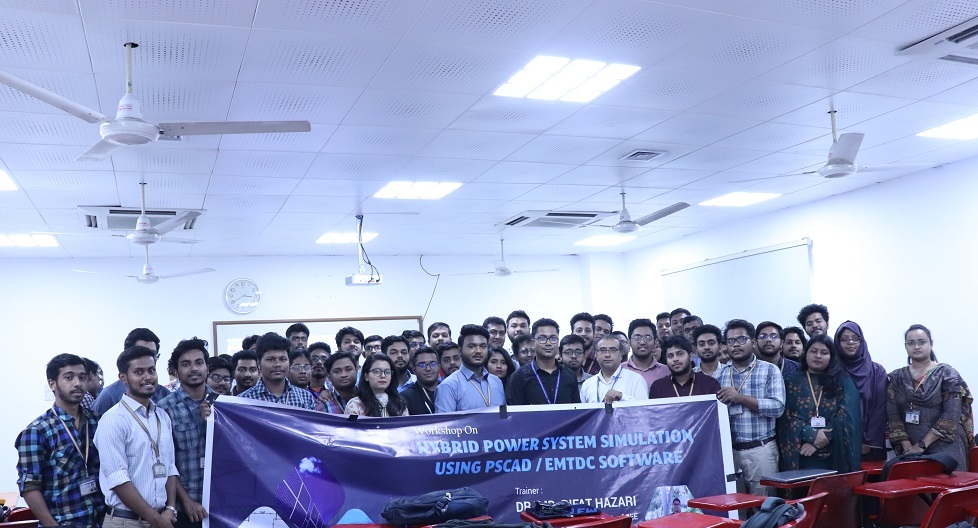 The workshop was divided the workshop into two segments. In the first segment Dr. Hazari gave introduction to power system and how it works. Then he helped the students the students with a tutorial on how to use PSCAD / EMTDC. He briefed about the large number of advantages of hybrid power system, like less harmful to environment as renewable energy sources are used. He then briefly discussed about renewable energy sources and scenarios of renewable energy in Bangladesh. He discussed about challenges of hybrid power system, like difficulty to produce output power with high quality and reliability for synchronization with the local grid connection. Renewable energy sources are intermittent. The second segment started after lunch break where Dr. Hazari provided hands on expertize to the participants using PSCAD / EMTDC software. He discussed in detail how to use the software and how to do simulation. The students participated enthusiastically. In the final part of the workshop students modelled hybrid power system in PSCAD.