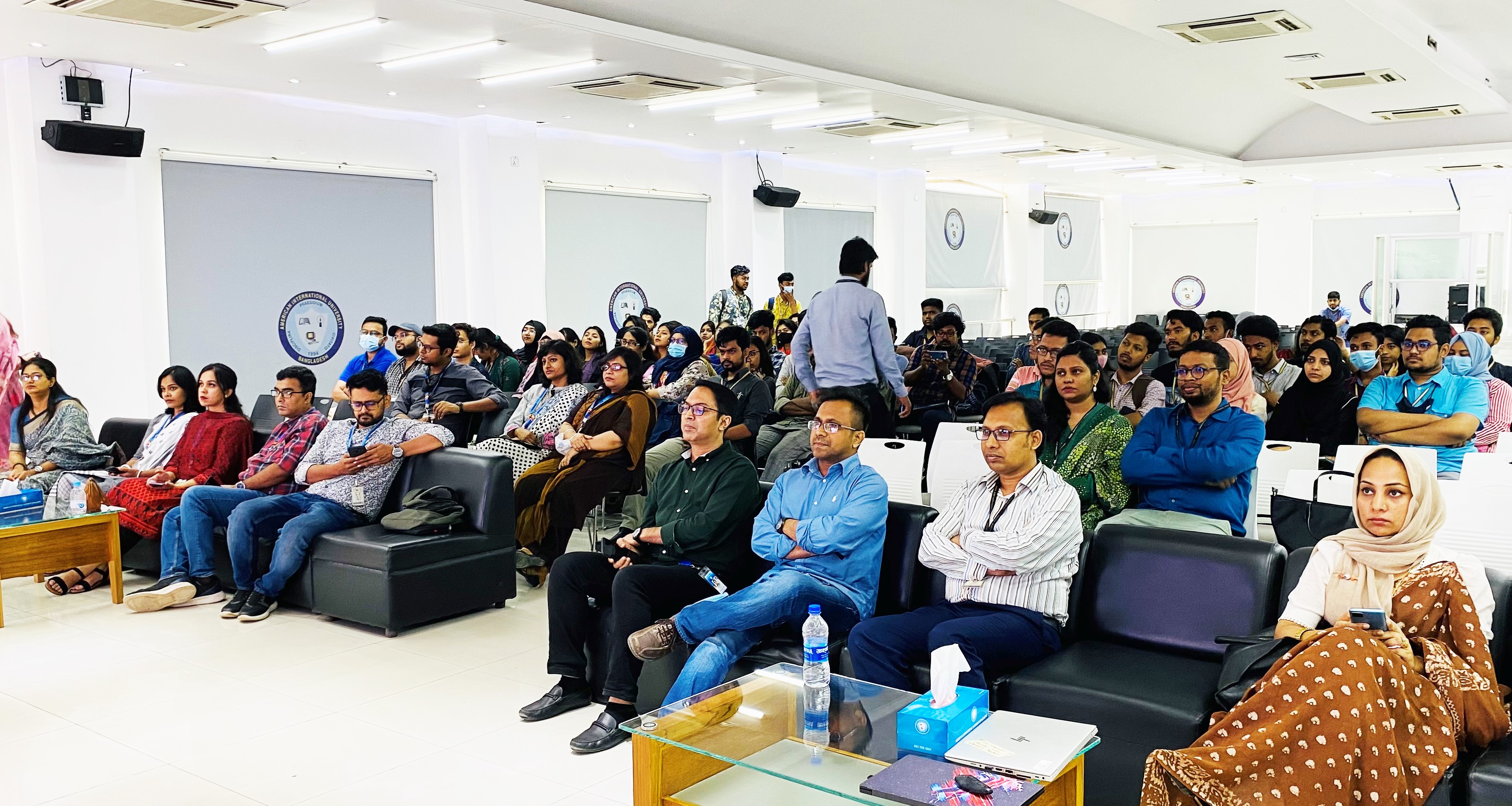 Vote of Thanks was conveyed by M. Arefeen Ibrahim, Head of Architecture Department, AIUB. The Head of the Department on this occasion shared the good news with congratulations and acknowledged Ms. Adrita Sajuti, for securing the 1st position in a Student Design Competition, organized by WEM Bangladesh Ltd. Ms. Adrita Sajuti shared her experience on stage, the journey throughout her accomplishment to encourage other students. At the end of the workshop, certificates of participation were distributed among the participants by Mr. Tariqul Islam, M. Arefeen Ibrahim, Ar. Ashik Vaskor Mannan and Ar. Ajmeri Nusrat Shoma. The workshop was effective in achieving its major intentions because of inclusive discussion on the topic and active participation of Faculty members and Students.