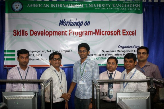 MicrosoftExcel is a computer spreadsheet program widely used by everyday people. It isan important part of daily corporate life to perform the basic activities. Tofamiliarize our students with basic excel activities, the Operations ManagementClub, under the supervision of Mr. Zobair Shibli and Mr. Ashfaque A. Mohib,organized a Workshop on “Skills Development Program - MS Excel.” The day longexclusive workshop was held on April 12, 2012 in the language lab of campus 5.