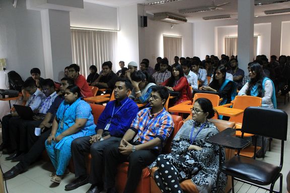 Engineering Students’ Association Of Bangladesh (ESAB) has organized a mega event entitled by “Unmanned Aerial Vehicle (UAV)” at AIUB, EEE Seminar Room-266, Campus 2, on 20thMarch, 2014. The workshop started with the national anthem. Later on, a brief promo video was demonstrated focusing on ESAB’s mission, vision and ideals.As special guest, Dr. Md. Abdur Rahman, Director(Faculty of Engineering)was present at the workshop andpresented his inaugural speech by thanking ESAB for organizing such events. He also talked briefly on the applications of Unmanned Aerial Vehicle (UAV).Then, Mr. Arnab Tanvir(Treasurer of ESAB central committee)delivered a welcome speech in which he also addressed about the assessment of knowledge and skills. Then, Md. Arif Raihan Maahi (General Secretary of ESAB) presented his speech regarding the importance of sharing knowledge and skills. Then, Mr. Rakibul Hafiz (Lecturer, Faculty of Engineering, AIUB),delivered his speech emphasizing that it’s much easier to seek knowledge due to arrangement of such events.Then, Ms. HumairaSalmin (Lecturer, Faculty of Engineering, AIUB),presented her speech thanking ESAB for organizing such events and expressed her satisfaction regarding the curiosity of students on these innovative things beside their academic study. Later on, Guest Instructor Md. Jubayer Al Billal Khanbrieflyintroduced Unmanned Aerial Vehicle (UAV) and talked about the history, classification and some of the modern of UAV and UAS (unmanned aircraft system). Then he discussedtheory of aerodynamics and aeromodeling. Different parts and mechanism of the UAV was described and explained visually and the equipment’s required to build UAV was described as well. At the end, he took some questions from the participants regarding UAV and provided some guidelines to the interested individuals. Afterwards,Mr. RinkuBasak( Head of Graduate Program)delivered a thanks note. He and Dr. Md. Abdul Mannan(Head of Undergraduate Program)handed over crest to the Guest Instructor Md. Jubayer Al Billal Khanas a symbol of appreciation.At the end, certificate was distributed among participants of the workshop by Mr. Rakibul Hafiz(Lecturer, Faculty of Engineering, AIUB)and Guest Instructor Md. Jubayer Al Billal Khan. The entire seminar was hosted by Kazi Anika Nawar and it was organized by Mohammad Ali Nipun and other face, organizing and working members under the supervision of Md. Abdur Rahman Nayem.The seminar was graced by the presence of Ms. Nadia Nowshin, Asst. Professor, Faculty of Engineering, Ms. Nadia Afroze, Lecturer, Faculty of Engineering and Mr. Md. Saniat Rahman Zishan, Assistant Professor, Faculty of Engineering & Special Asst., OSA.