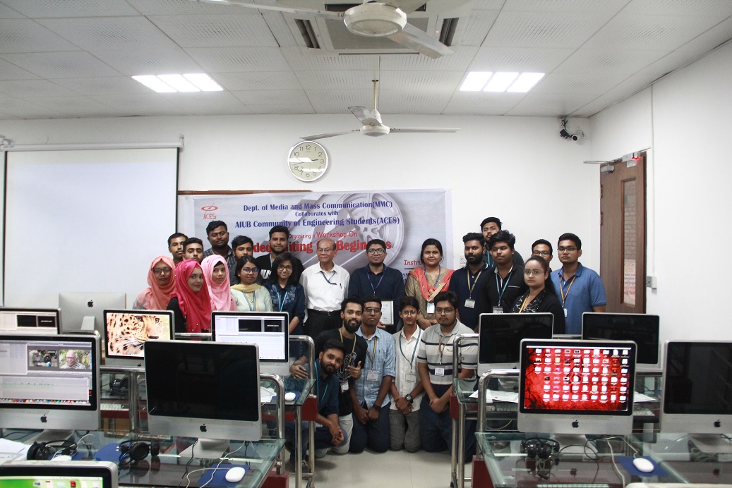 On October 17, 2019 a Workshop on “Video Editing for Beginners” was organized by AIUB Community of Engineering Students (ACES) in collaboration with Department of Media and Mass Communication at MAC Lab, Annex 2, 2nd floor, American International University-Bangladesh (AIUB). It was an informative event which took place from 10:00 AM to 2:30 PM. The workshop was conducted by Mr. Mohammad Foysal Chowdhury (Assistant Professor, Department of Media and Mass Communication, AIUB) with a total of 22 participants.