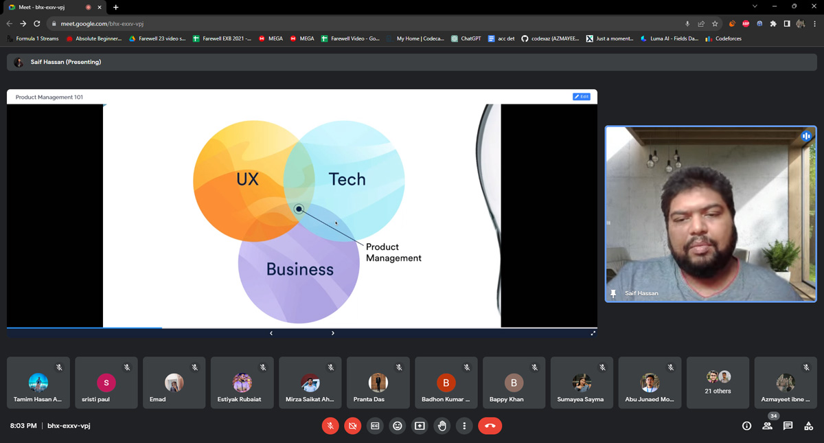 The workshop was well-attended, generated attention, raising numerous questions for the speaker to address as the program progressed. Sumayea Khatun and Iftakhar Ahmed Chowdhury were thanked and sent farewell by Mr. Saif. Ms. Sumayea announced the conclusion of the session at 8:30 p.m., inspiring and armed with insightful knowledge on product development.