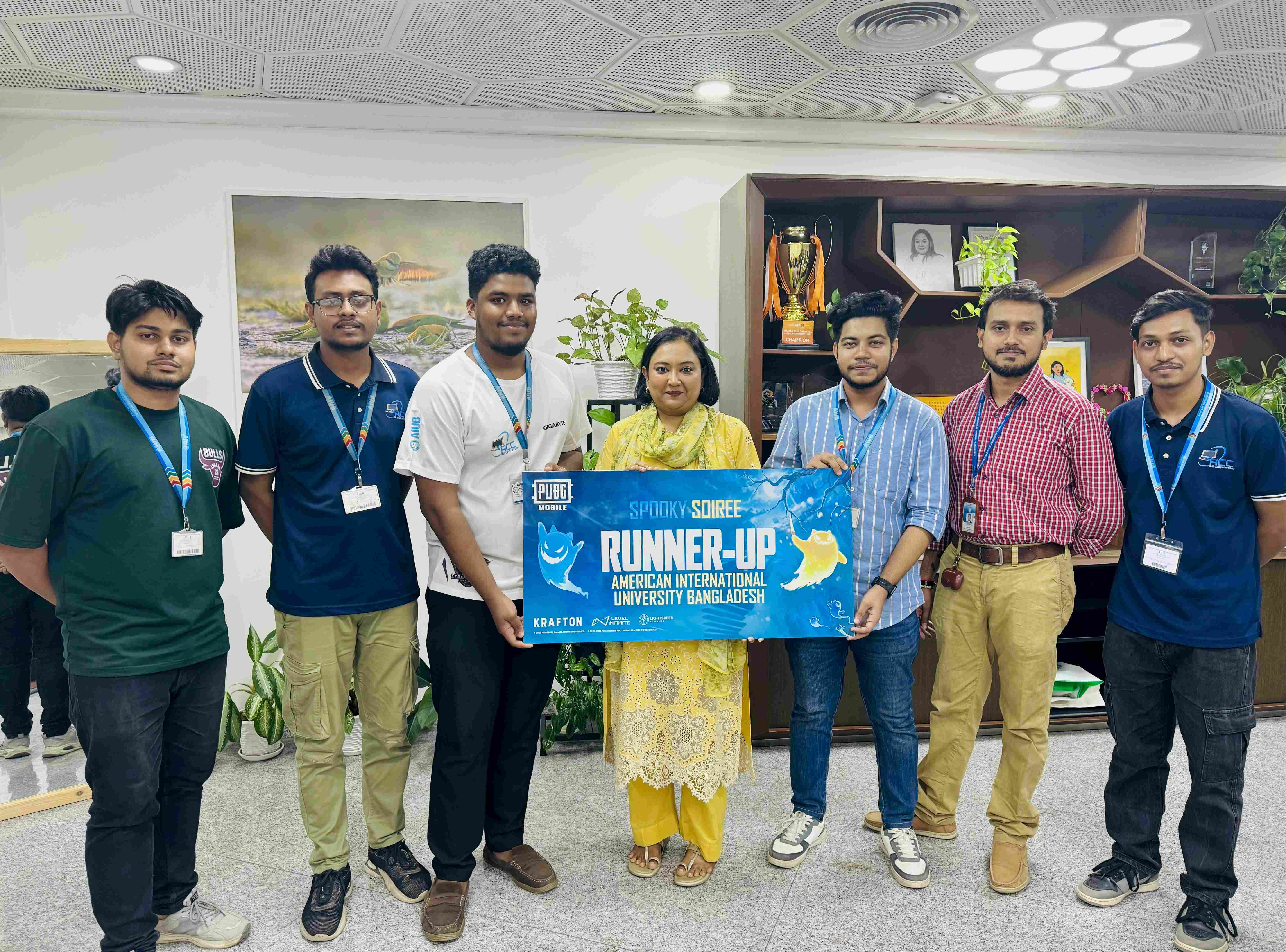 American International University Bangladesh (AIUB) proudly achieved the 1st Runner-Up position in the PUBG MOBILE Spooky Soiree: Campus Jam event. The position was secured by competing against the top five universities in Bangladesh, showcasing the skill, teamwork and rising esports talent of AIUB students.