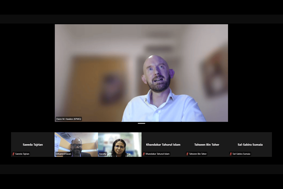 At the end of the program, Dr. Rezbin Nahar, Professor and Director, Undergraduate Program (BBA), delivered the vote of thanks and conveyed appreciation to Mr. Hawkes for accepting the invitation from FBA. Dr. Kamrul Hasan, Professor and Head, Department of Accounting, formally presented a Certificate of Appreciation to the resource person in recognition of his valuable contribution.