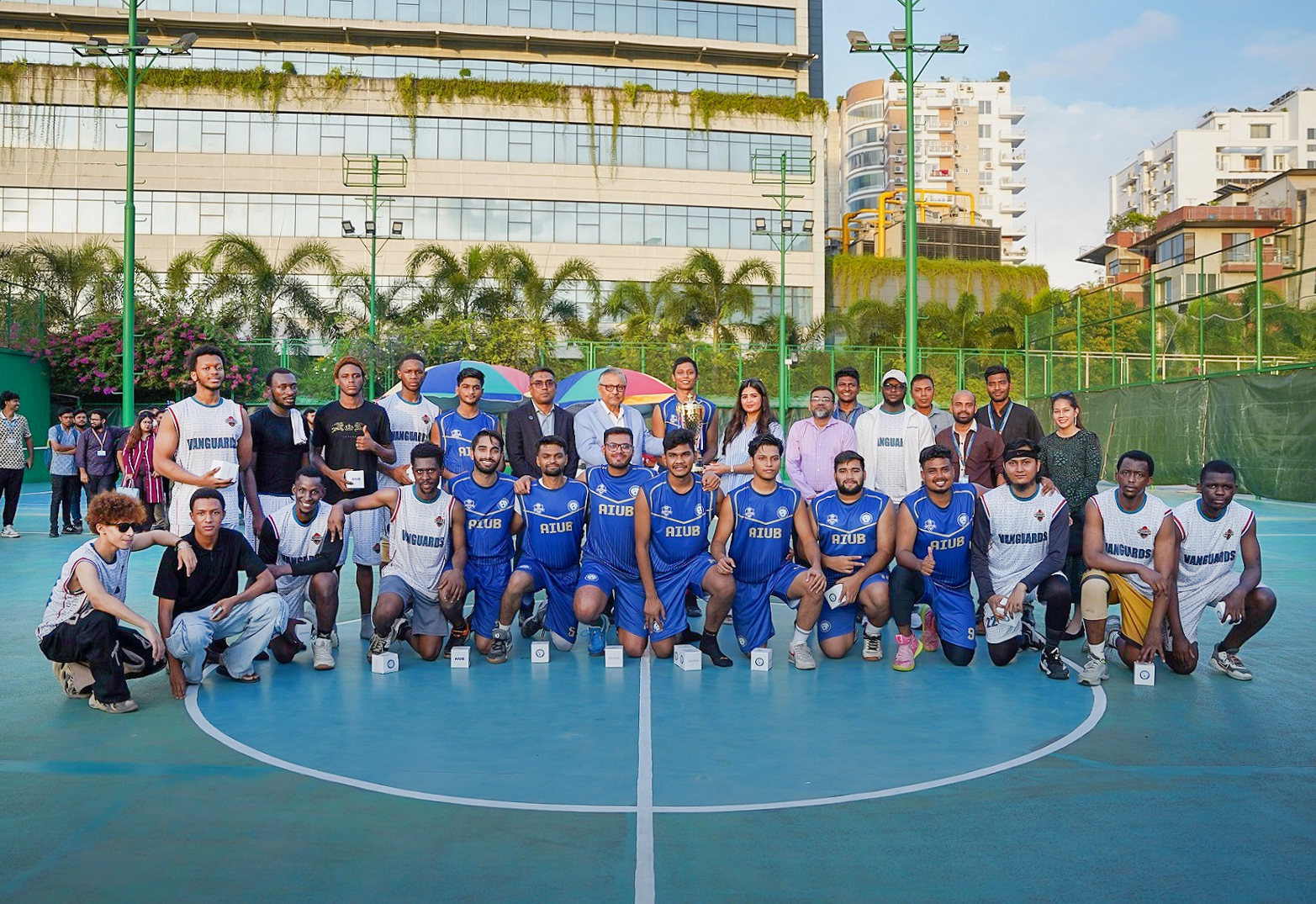 On 24 August 2025, Sunday, a friendly basketball match was held at the American International University-Bangladesh (AIUB) basketball ground between AIUB and the International Students’ Community (ISC) of the Islamic University of Technology (IUT). The event was organized by the Office of Public Relations, AIUB, with support from the Office of Sports, AIUB. Following an exciting and competitive game, AIUB emerged as the winner of the match. A prize-giving ceremony was held, where the distinguished guests handed over trophies and souvenirs to the players of both teams. The ceremony was graced by Professor Dr. Saiful Islam, Vice-Chancellor of AIUB, as the Chief Guest. Special guests included Ms. Shania Abedin, Member of the Board of Trustees of AIUB, and Professor Dr. Md. Abdur Rahman, Pro Vice-Chancellor of AIUB. AIUB officials, faculty members, and students were also present. The event fostered friendship and sporting spirit between the two universities, strengthening ties among students and showcasing AIUB’s commitment to promoting extracurricular activities alongside academic excellence.