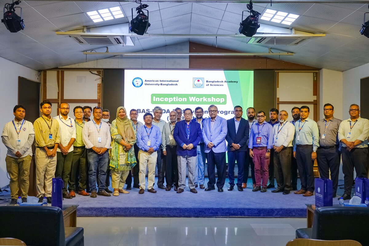 An inception workshop on the research project titled, “Desalination of water and soil using nanomaterials and nanotechnology” funded by the Bangladesh Academy of Sciences (BAS) under the BAS-USDA endowment program (6th phase) was held on September 25, 2025, at AIUB Media Studio. Professor Dr. Mesbahuddin Ahmed, honorable chairman, Bangladesh Accreditation Council, and Fellow of the Bangladesh Academy of Sciences (BAS) was present in the workshop as the monitor of the project and the chief guest.