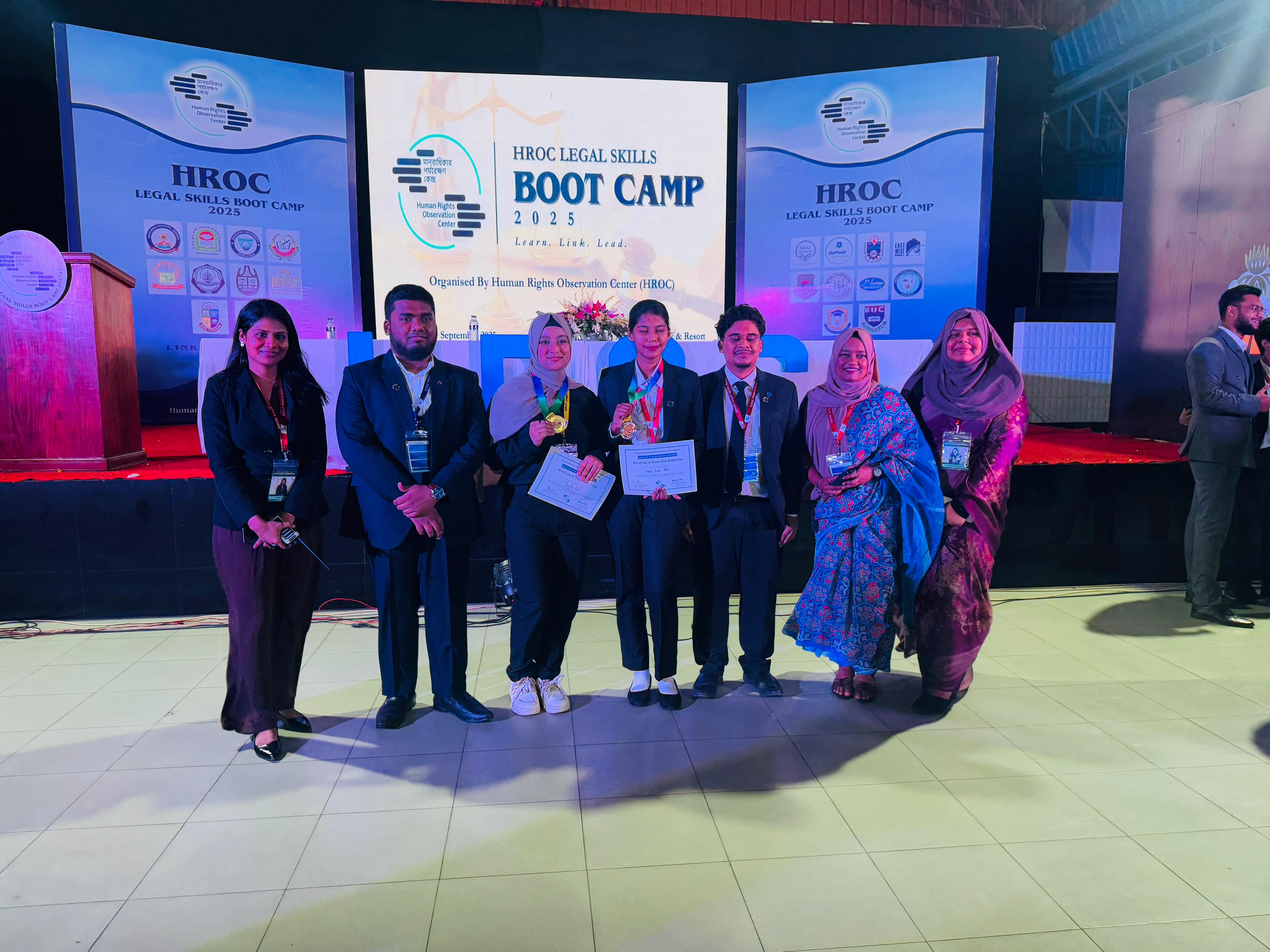 Alongside them, four students participated as camp delegates, showcasing outstanding teamwork and advocacy skills; Mayaz Ahmed (2nd year, LL.B) represented Team Brown, which secured 3rd place in the PowerPoint Presentation activity, Anas Ahmed (2nd year, LL.B) was part of Team Lavender, which performed strongly throughout the camp, Nihita Saha (2nd year, LL.B) represented Team Pink, which earned the prestigious Best Distinction Award and Sazida Selim (2nd year, LL.B) joined Team Yellow, which received the Best Spirit Award.