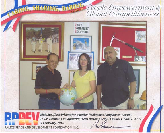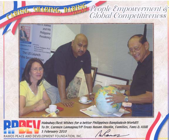 The VC, Dr. Carmen Z. Lamagna, together with Mr. Hasanul A. Hasan, Treasurer and VP for HR and Administration" paid a courtesy visit to His Excellency, former President of the Philippines, Mr. Fidel V. Ramos, in his office last February 5, 2010.